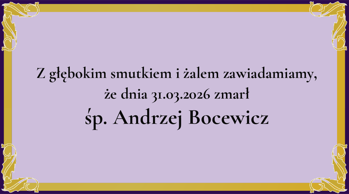 Z głębokim żalem zawiadamiamy, że dnia 31.03.2026 zmarł