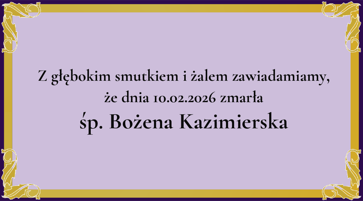 Z głębokim żalem zawiadamiamy, że dnia 10.02.2026 zmarła