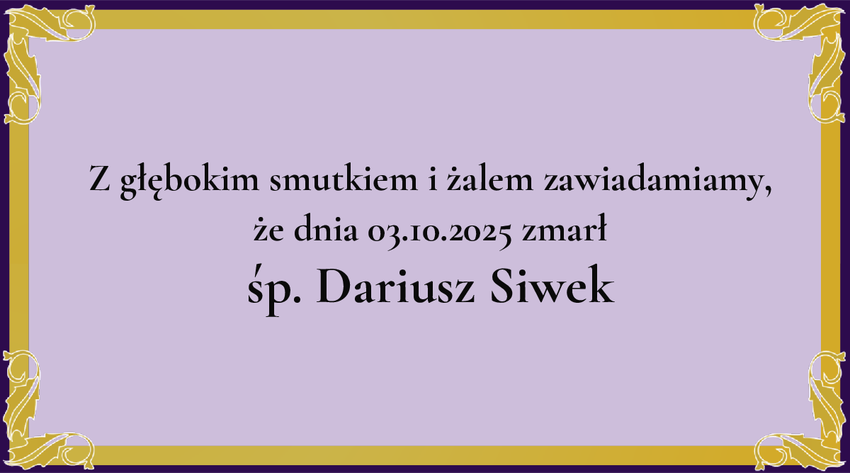 Z głębokim żalem zawiadamiamy, że dnia 03.10.2025 zmarł