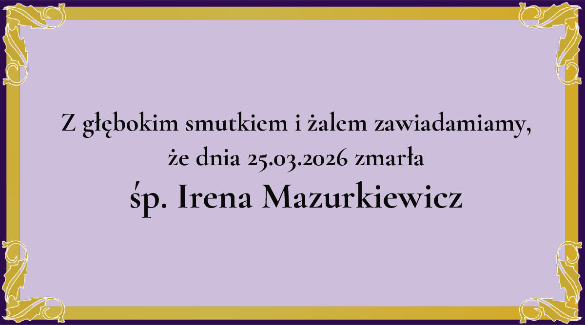 Z głębokim żalem zawiadamiamy, że dnia 25.03.2026 zmarła