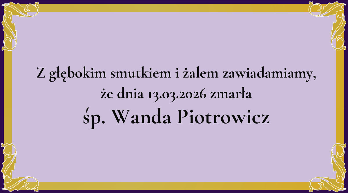 Z głębokim żalem zawiadamiamy, że dnia 13.03.2026 zmarła