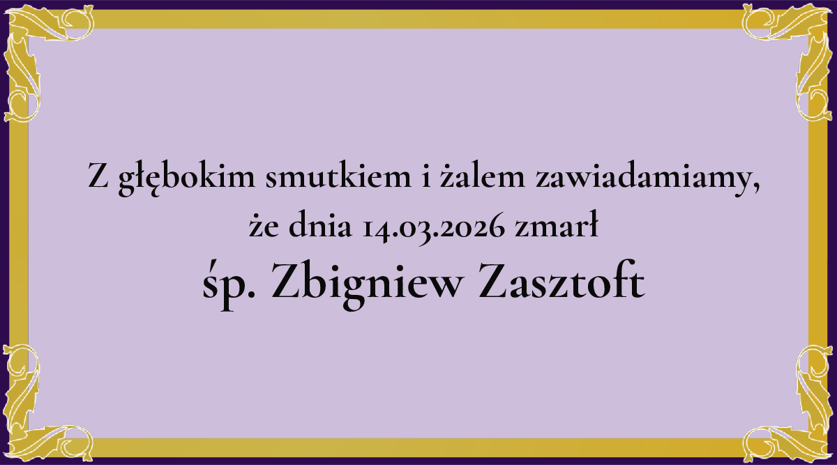 Z głębokim żalem zawiadamiamy, że dnia 14.03.2026 zmarł