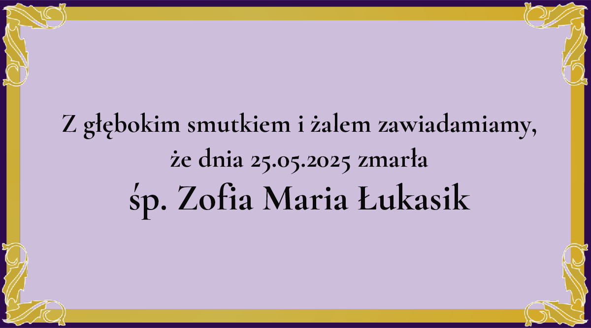 Z głębokim żalem zawiadamiamy, że dnia 25.05.2025 zmarła